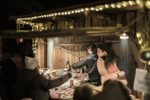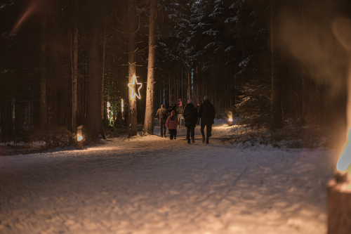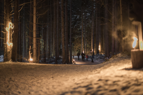 Durante il periodo dell'Avvento nella Foresta Incantata, presso la prima cascata del rio Riva, si crea una magica atmsofera con piccole capanne con musica silenziosa, té, biscotti e altre prelibatezze.