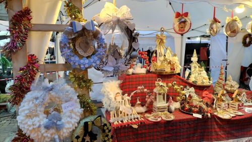 Regalistica artigianale e addobbi natalizi hand made presenti: presepi e centrotavola natalizi, addobbi natalizi creativi, pietre dure e monili, amuleti e incensi, cucito creativo, oggettistica d’arredo, oggetti in terracotta, sciarpe con calamita, cappelli e manicotti in lana, bj realizzata in vari materiali (argento, pietre dure, metallo, minerali, tessuto con perline e cristalli), borse e accessori in cachemire e in stoffa, sculture di sapone, accessori steampunk. Poi Libri, quadri e creme per il benessere naturale e lavanda.