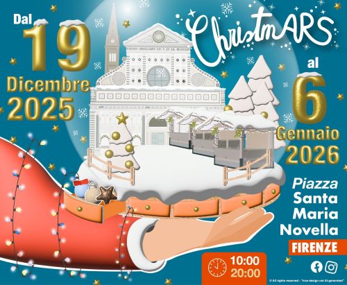 Dal 19 dicembre 2025 l'appuntamento nella prestigiosa Piazza di Santa Maria Novella con l'Artigianato artistico toscano degli stand di ChristmaArs ovvero Natale Ars Manualis. Si tratta della 5° edizione di questo evento che prevede a8 casette in legno che accoglieranno i Maestri Artigiani che escono dai loro laboratori per celebrare e condividere l'Eredità dei Saperi Toscani.