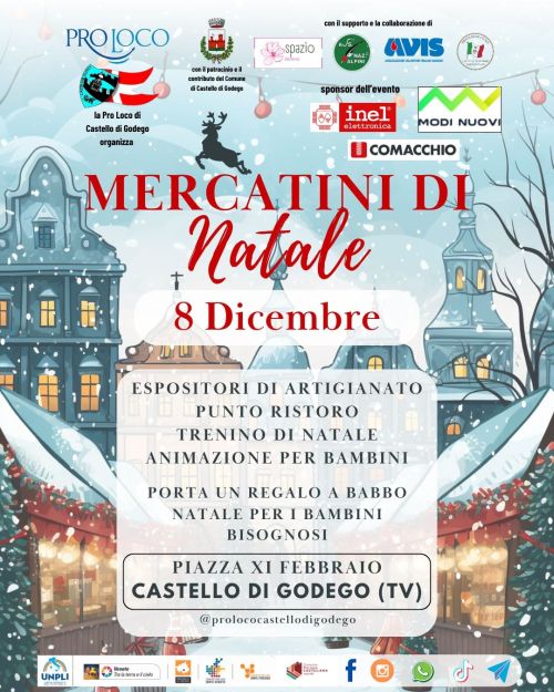 A Castello di Godego (TV), si può trascorrere una giornata dedicata al Natale, con tanti espositori Hobbisti con i loro prodotti al 100% artigianali provenienti da tutto il Veneto.