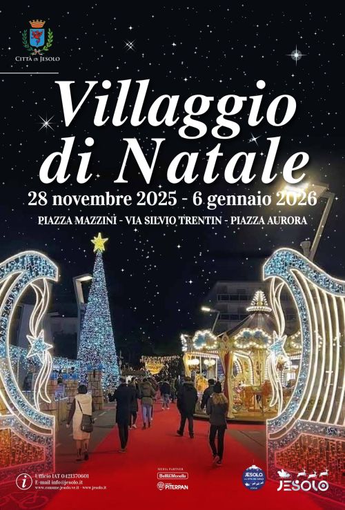 Il Villaggio di Natale di Jesolo avrà luogo tra piazza Mazzini e piazza Aurora e via Silvio Trentin dove circa 70 casette in legno con prodotti tipici gastronomici ed oggettistica tradizionale del Natale.