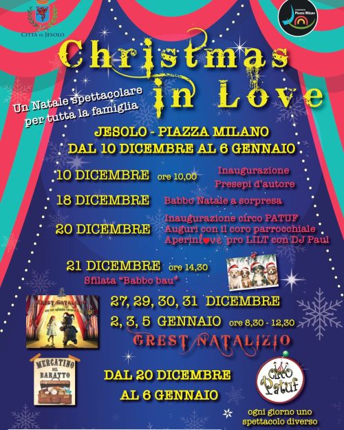 Dal 10 dicembre 2025 fino al 6 gennaio 2026, in piazza Milano sarà presente il Christmas in Love con installazioni, piccoli eventi e momenti dedicati alla comunità. Tra le casette del villaggio sarà possibile scoprire il nuovo percorso dei Presepi d’Autore.
