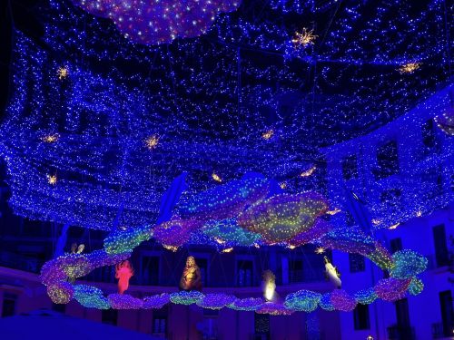Anche quest'anno in Piazza Vittorio Veneto sarà montato il trenino dorato dinanzi alla Stazione Centrale, pronto ad accogliere i turisti in arrivo a Salerno. In Piazza della Libertà ci sarà l'installazione "I Fiori del Mare" mentre nella sottopiazza della Libertà, brilleranno 100 insegne luminose a comporre una suggestiva “Partitura d’Amare”. Nella vicina Villa Comunale arriveranno i dinosauri, trasformando l’area in un “giardino preistorico”. Il centro storico e via Mercanti sarà attraversato da un vero e proprio "Percorso Fiorito" mentre un suggestivo “Mare d’inverno” avvolgerà il Corso Vittorio Emanuele.