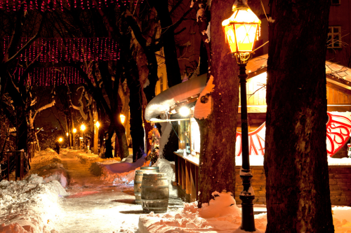 La capitale croata è intessuta di vicoli medievale, palazzi Liberty frammisti a edifici barocchi, affiancati da un intreccio di compostezza neoclassica e fantasie Art Nouveau. La prima domenica d’Avvento in piazza Ban Jelacic viene installato un gigantesco albero di Natale e il Mercatino di Natale diventa protagonista della piazza. La centralissima via Bogoviceva si trasforma in una vera e propria via natalizia, con tantissime bancarelle colme di tipicità locali mentre in tutto il centro storico Babbo Natale viaggia sul… “tram di Natale”, decorato a tema! È possibile parlare con Babbo Natale facendo un giro in tram, le cui partenze sono previste ogni mezz’ora dalla piazza principale.